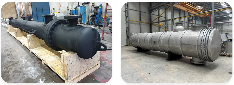 Farklı endüstriyel uygulamalara yönelik olarak özelleştirilebilir gövde borulu eşanjörler tasarlıyoruz. Isı transferi ihtiyaçlarınızı karşılamak ve optimum performans sağlamak üzere tasarlanan bu eşanjörler, uzun ömür ve güvenilirlik sağlamak amacıyla sıkı testlere tabi tutulur.